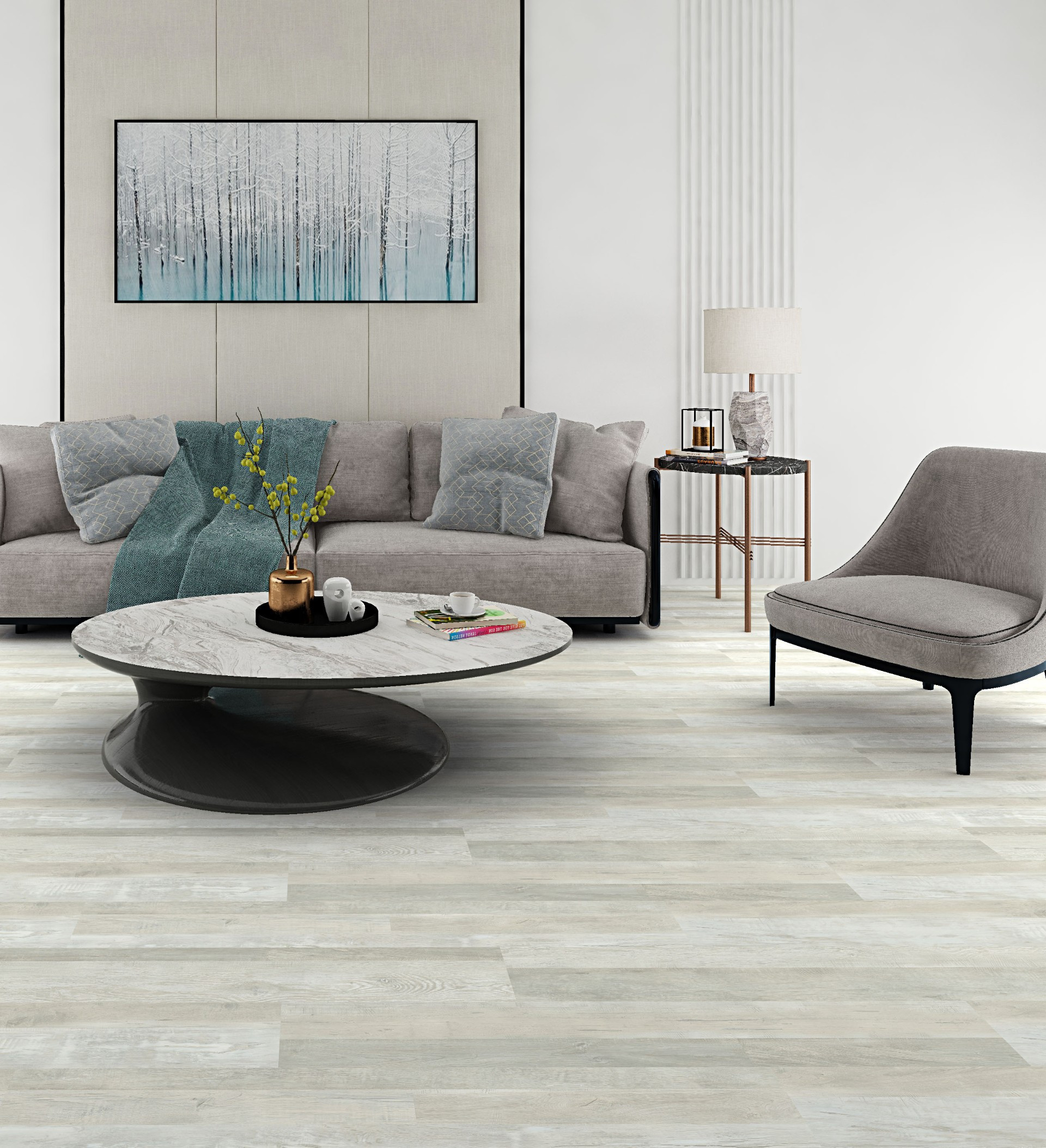 100% Waterproof | Pet Friendly | Stain Resistant | Impact Resistant | Lifetime Residential Warranty | Quick & Easy to Install | Patented click locking system | Easy to Maintain | Scratch Resistant | Ultra HD Stunningly Beautiful Wood Visuals | Natural wood feel surface texture | Healthy Flooring choice with no formaldehyde & no phalates & no heavy metals & no benzene & no plasticizes | Intertek Clean Air Certified Flooring; which meets stringent indoor air quality emissions criteria | Made from 70% Natural Stone & 30% Virgin PVC | Very affordable product and install cost | Wont expand or contract | No acclimation | Worry & Stress free maintenance | Installs right over most hard & flat floors | Suitable with underfloor heating | Conforms to room temperature | Fire Resistant | Wear resistant | Safe, slip resistant surface | Sound Absorbing, built in high density IXPE underpad | Antibacterial | Premium Quality Products - which meet and exceed ISO & ASTM standards | European Origin | Attractive & Informative Packaging |